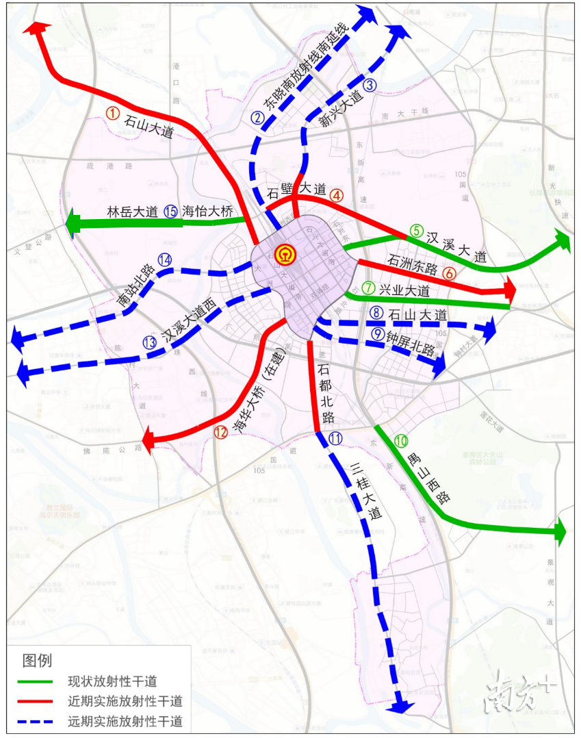 通道三:東曉南放射線南延線(規(guī)劃中,9.4公里)-東曉南放射線(已通)-東曉南高架(已通),15.5公里,需時12分鐘;