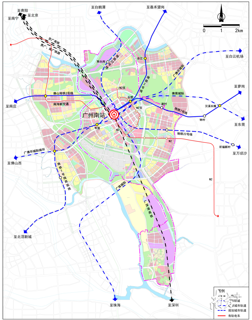 南海新交通:廣州南站-南海金融高新區(qū);N2線:廣州南站-大夫山-市橋-蓮花山。